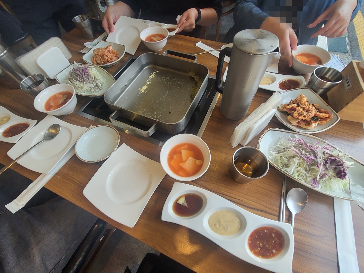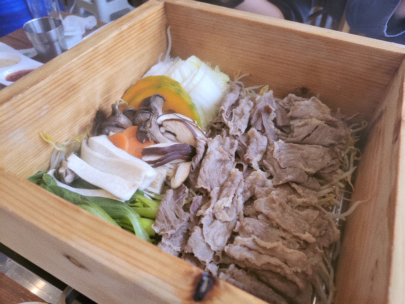 편백찜에는 숙주와 청경채, 각종 버섯, 양배추, 단호박 등 다양한 야채가 함께 있었다. 미국산 소고기였는데 엄청 부드럽진 않아도 평범하게 맛있었다. 사실 먹고 나선 4인분인데 너무 적다는 느낌이 들었다. 하지만 이 판단은 오산이었으니...