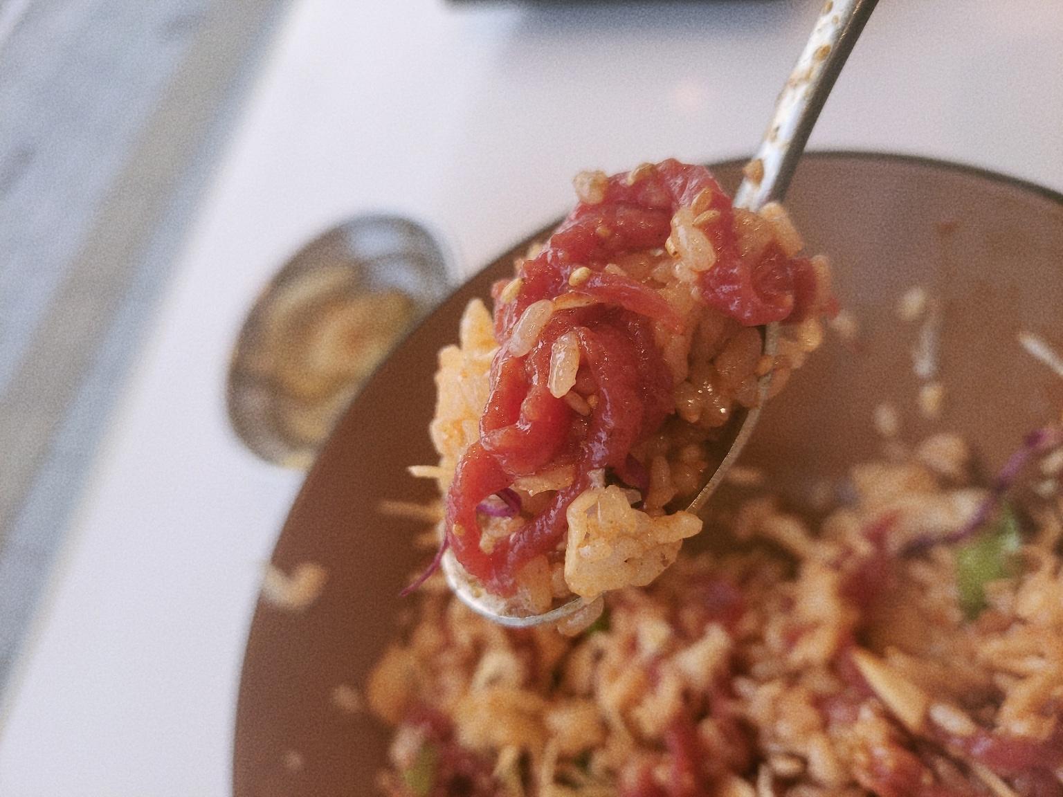 사실을 밝히자면 나는 원래 육회를 참 좋아한다. 그래서 육회덮밥을 시켰는데 양은 좀 적었지만 정말 맛있었다. 특히 이곳의 고추장소스(?)가 맛있는 것 같다.