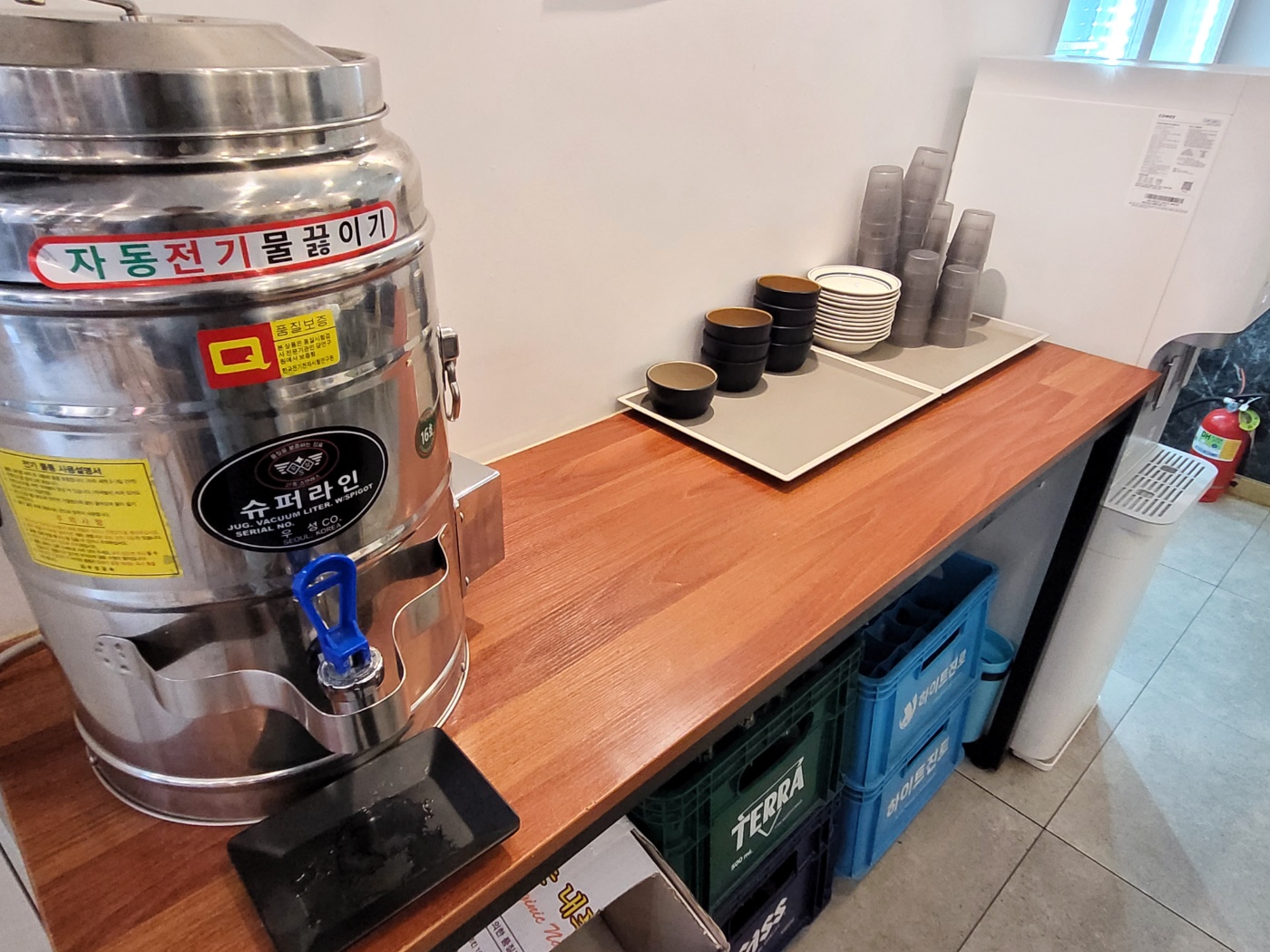뒤편엔 물과 국을 퍼올 수 있는 셀프 코너가 따로 있다.