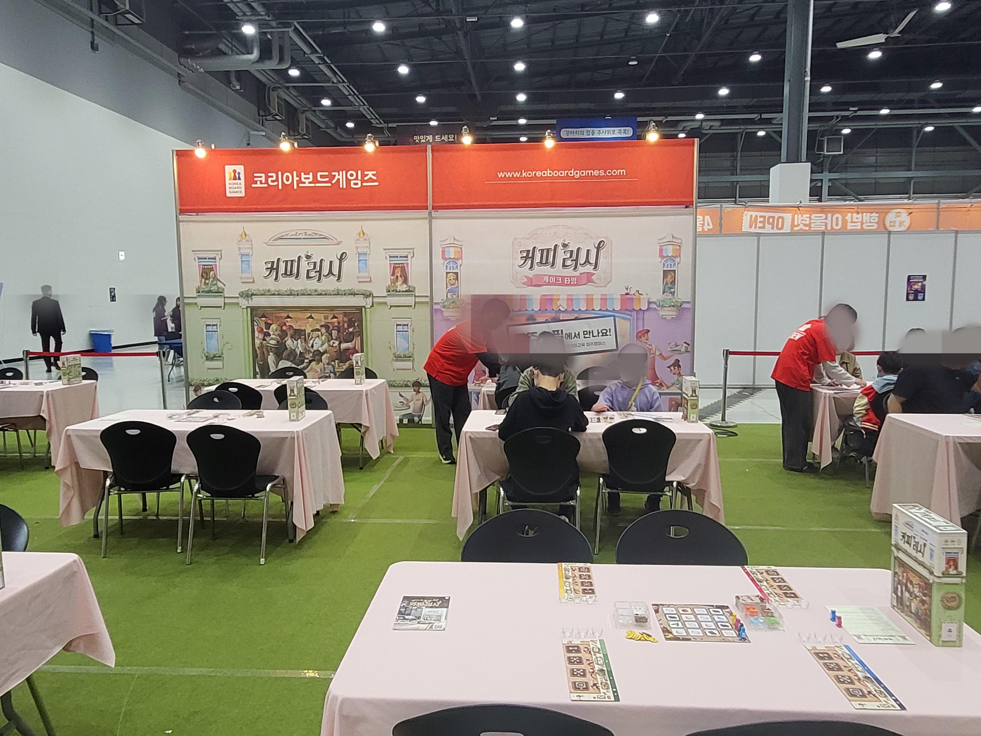 입구에 들어가자마자 예전 <파주 슈필>에서 구매했던 '커피러시'의 체험존을 볼 수 있었다. 체험존 앞에는 <커피러시> 기본판 옆에 확장판인 <커피러시-케이크타임>의 구성품 전시가 되어 있다.