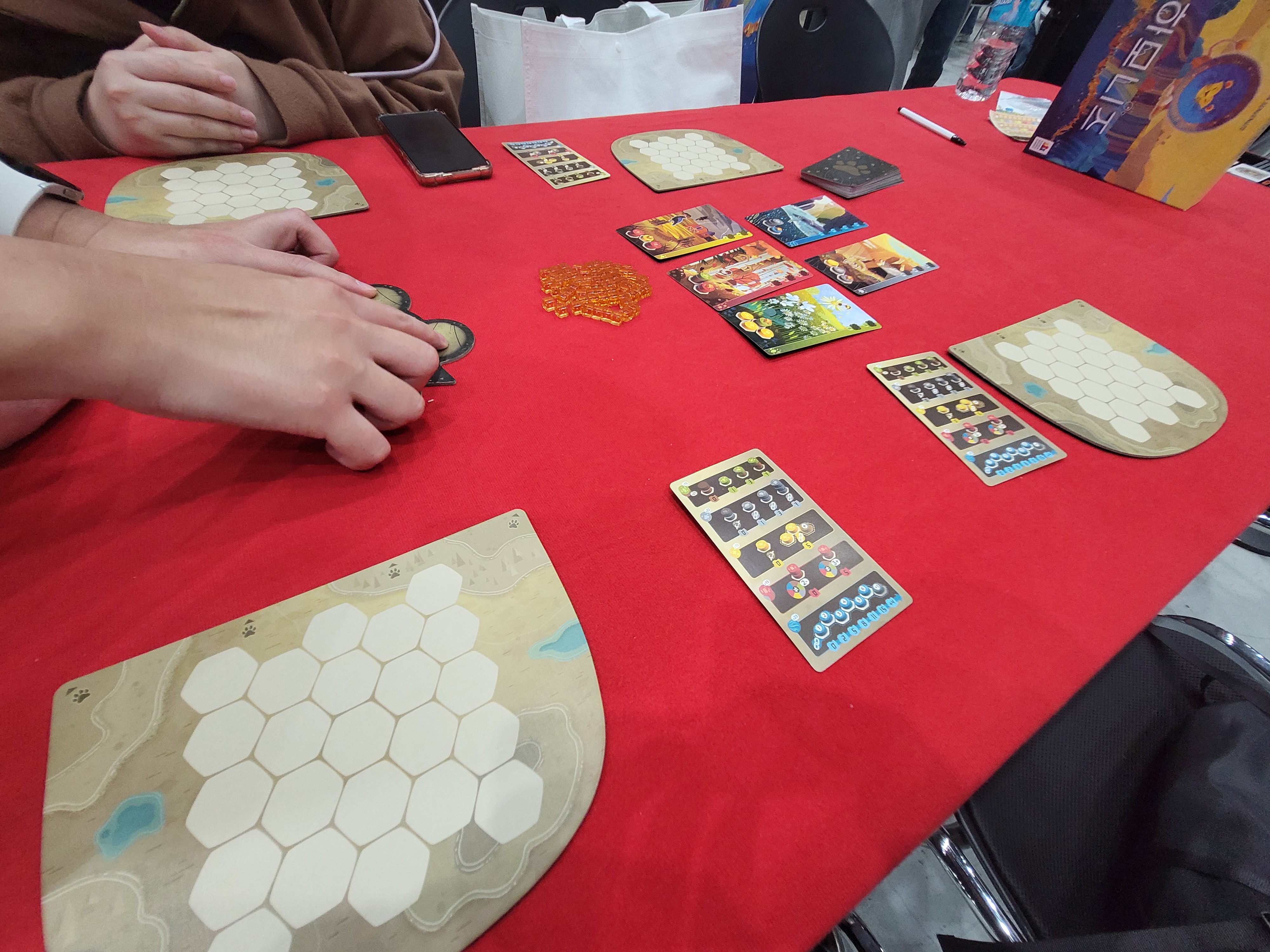동행인과 함께 체험을 해 봤는데 거의 몇십 점 차이로 처참히 졌다는... 슬픈 소식이 있다. 누구랑 하느냐, 어떤 동물 카드를 선택하느냐, 어떤 지형지물을 배치하느냐 등 여러 가지 변수가 있어 리플레이성이 괜찮아 보였다. 올해 <2024 파주 슈필>에 참가하고 주머니 사정이 괜찮으면 구매할 예정이다.