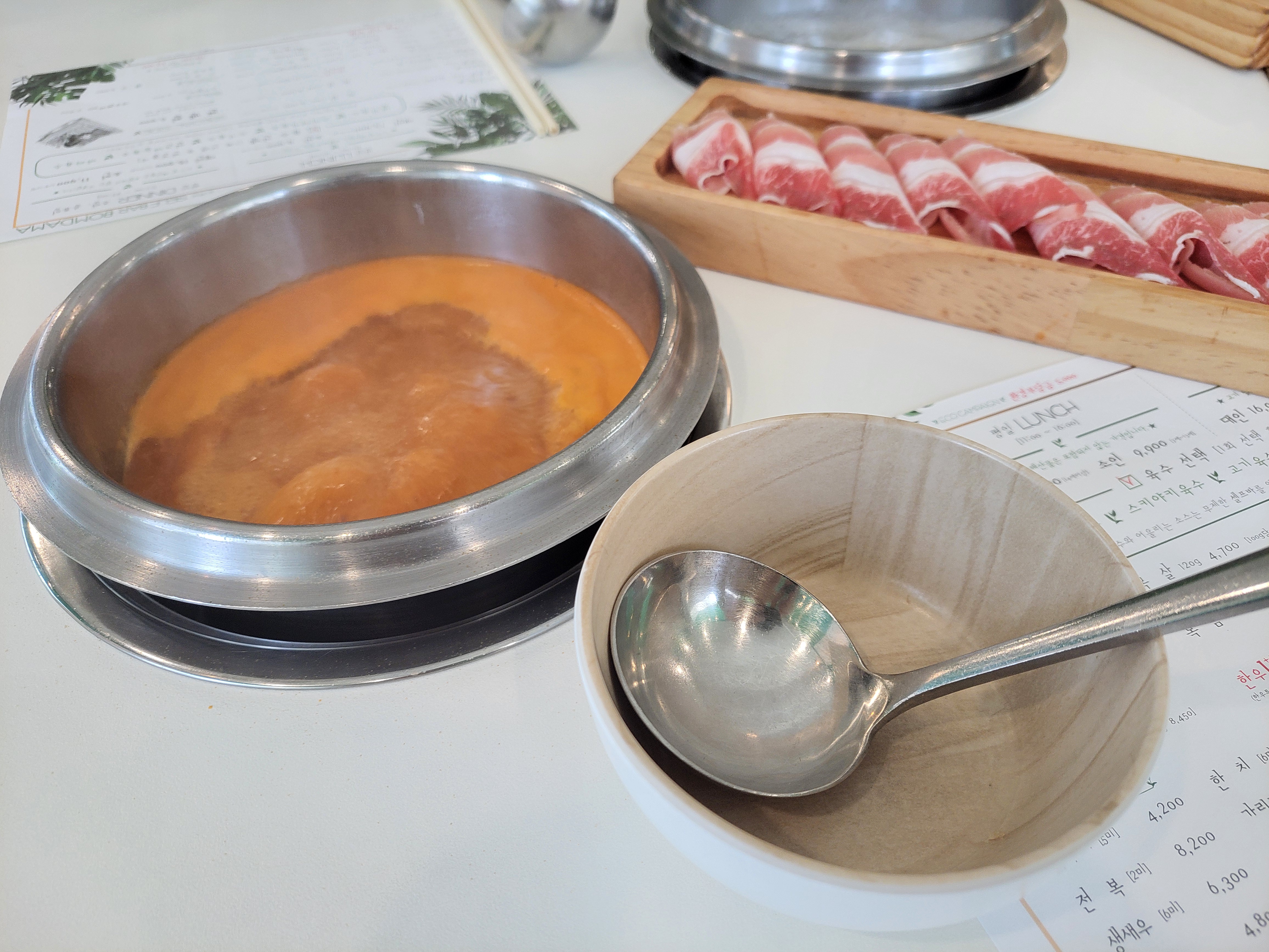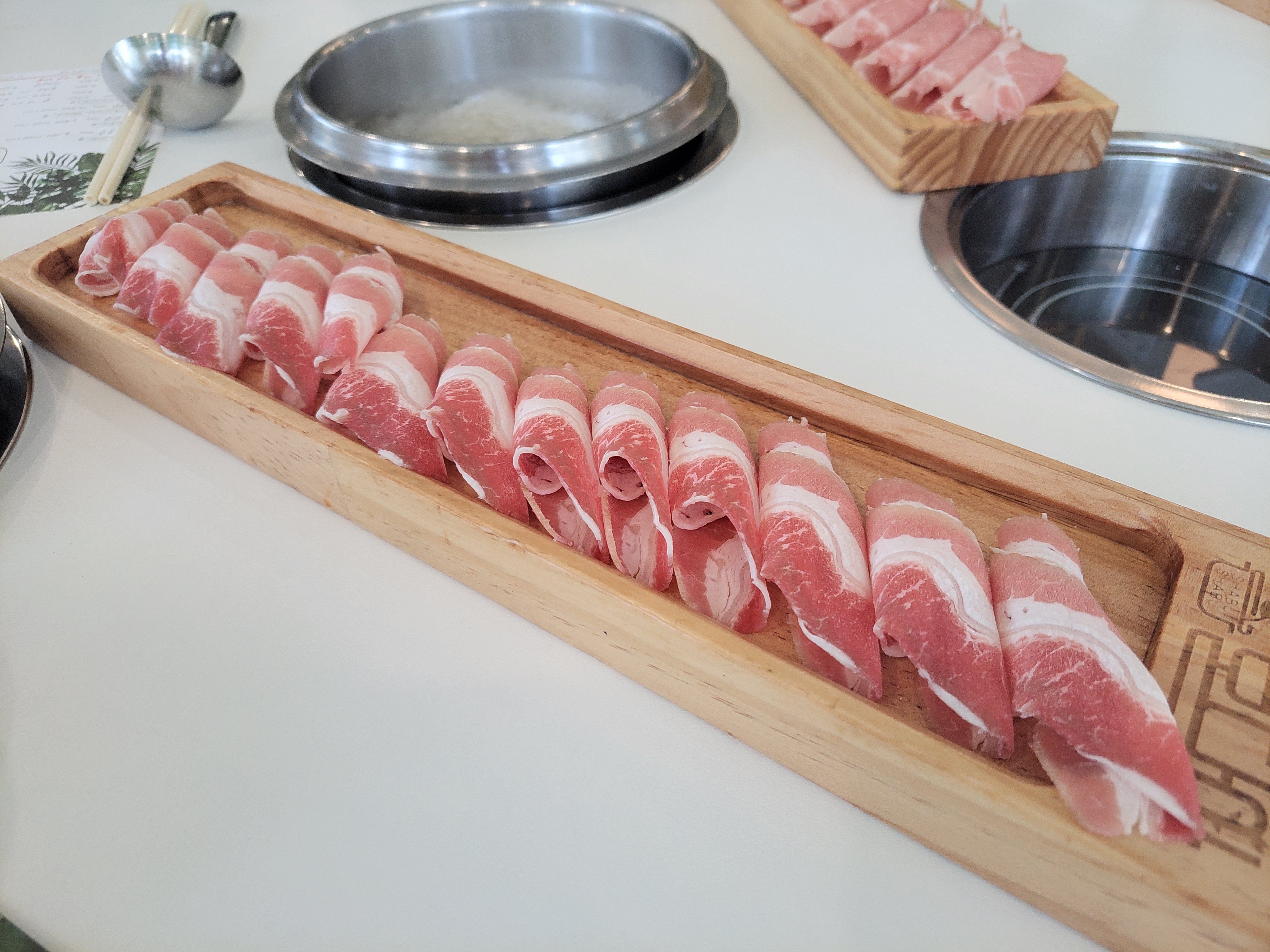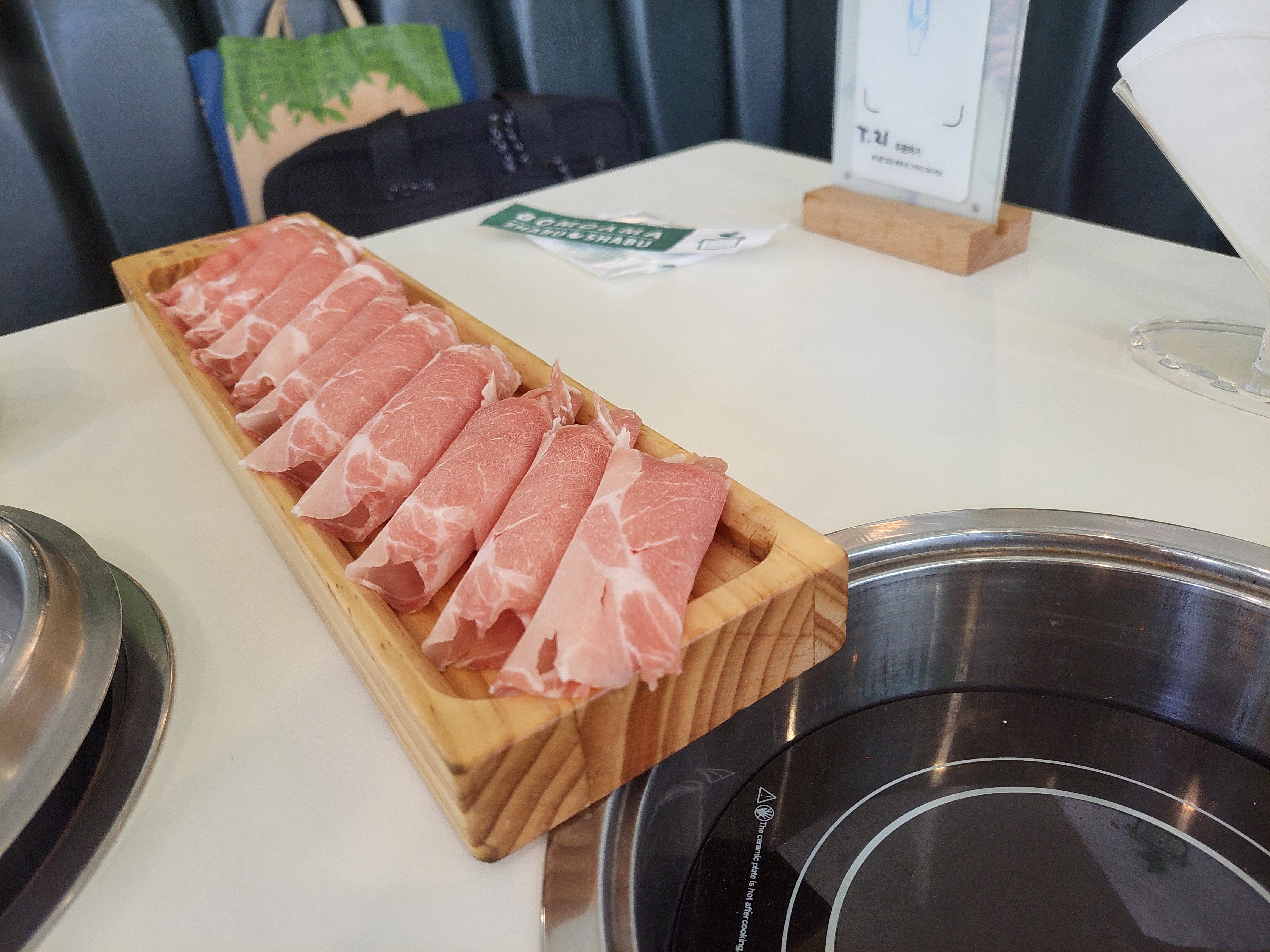 육수는 멸치육수, 스키야키육수, 고기육수, 얼큰마늘육수, 마라육수 이렇게 5종류가 있다. 예전에 먹었을 때 스키야키육수는 단 불고기 맛이고, 얼큰마늘육수는 말 그대로 얼큰 + 마늘맛이라서 취향에 맞았다.