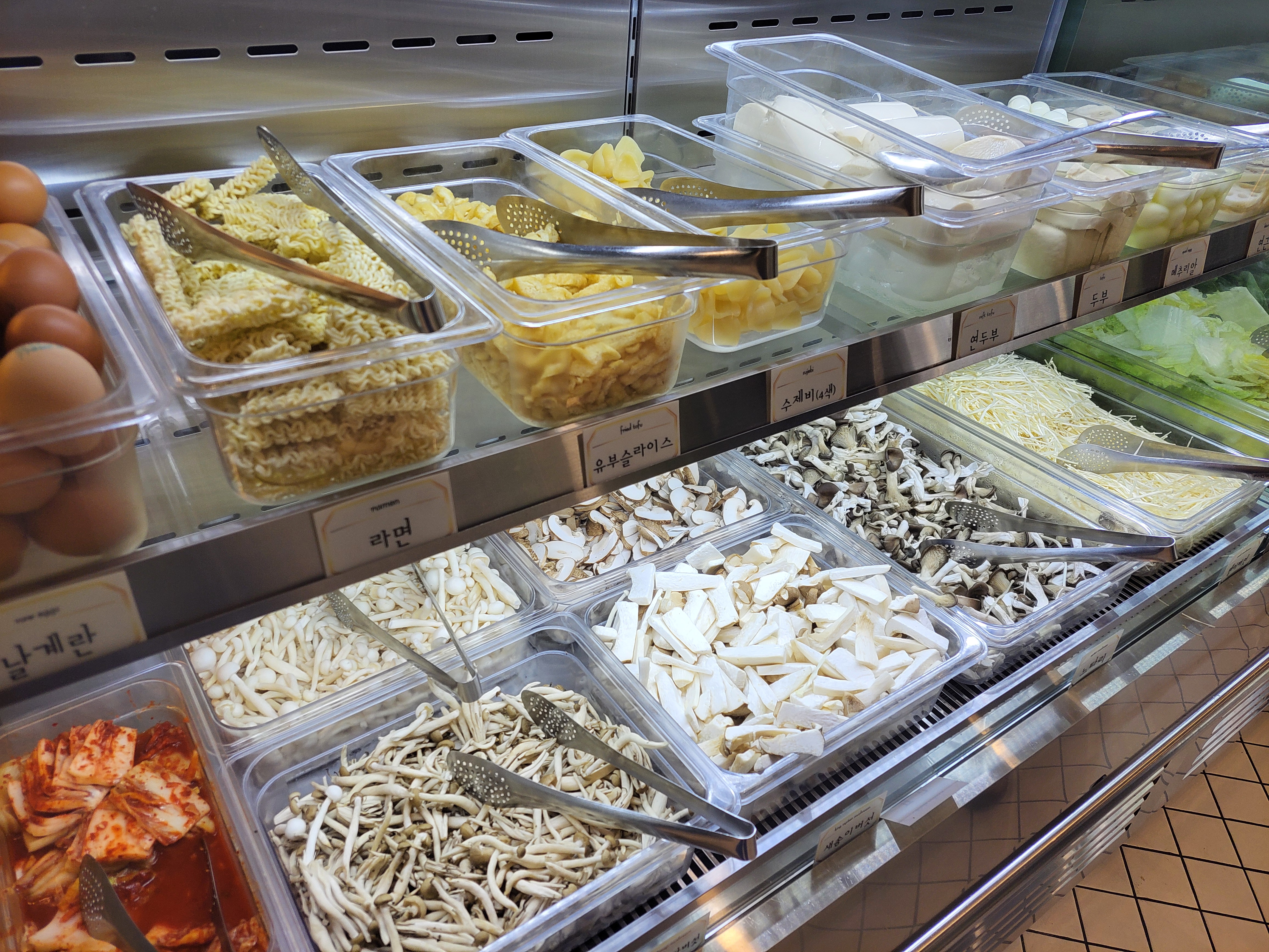 버섯종류도 많고, 라면사리나 수제비도 있다. 김치도 있지만 한 번도 안 먹어봤다. 후식으로 먹을 수 있는 리치와 람부탄도 있는데 어째선지 사진이 없다.