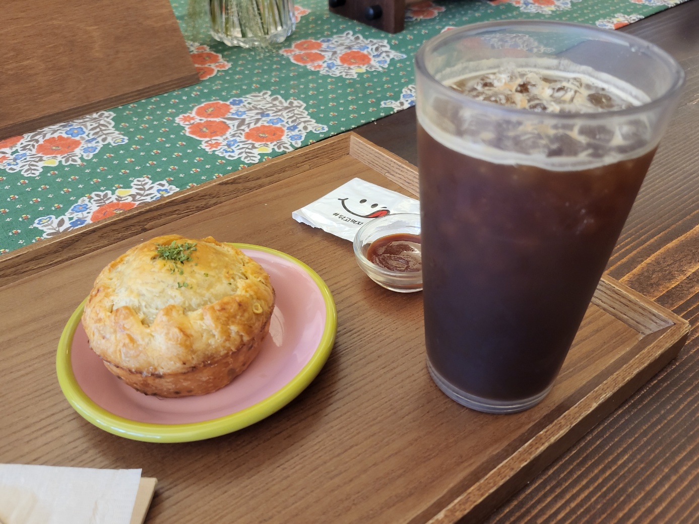루바브라즈베리 파이 옆에 있던 건 뭔지 모르겠지만 오후 2시에 이미 매진 된 상태였다. 일단 배고파서 미트파이와 아메리카노 먼저 시켜 먹기로 결정했다.