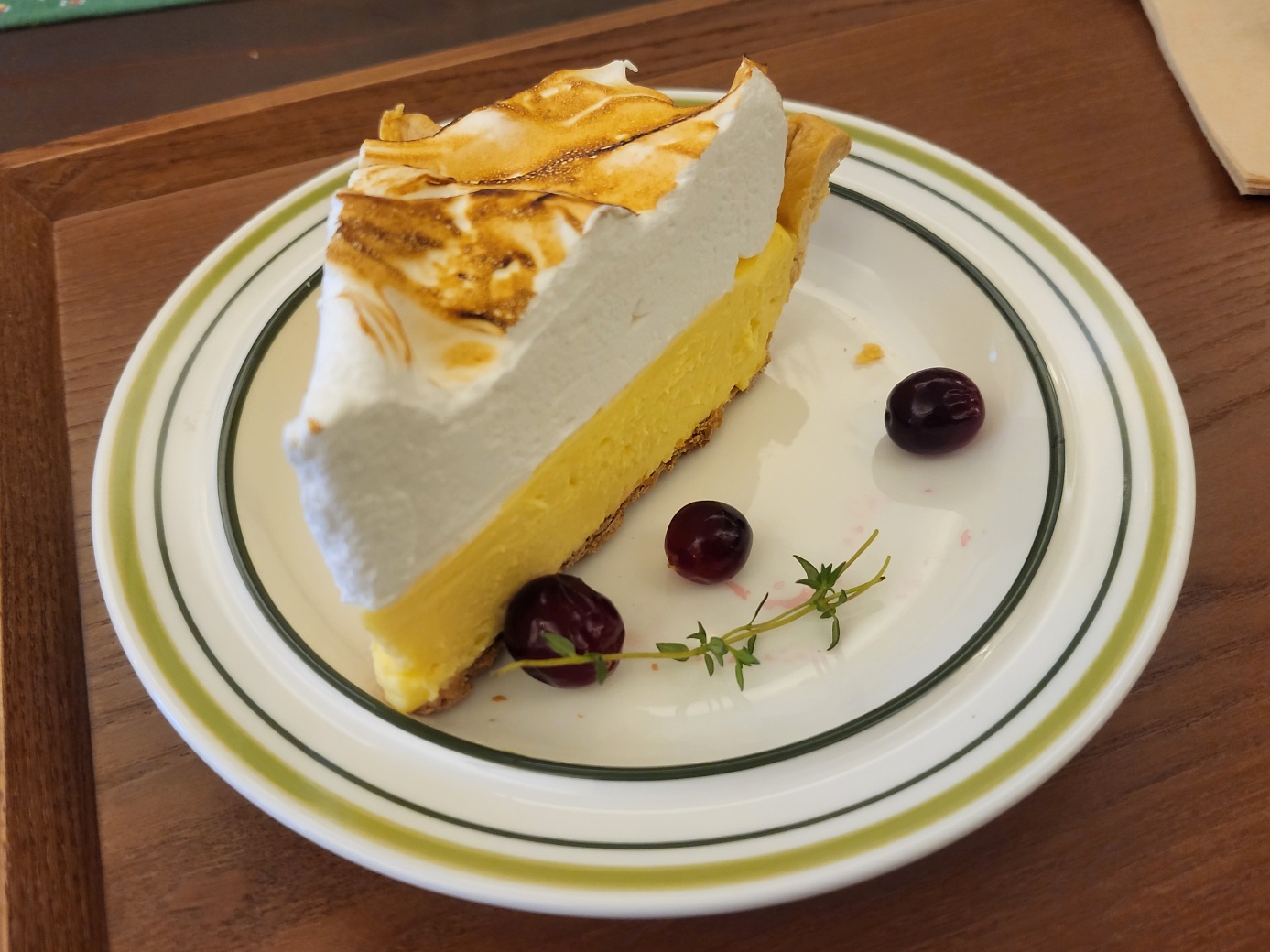 걸신들려서 하나 더 시킨 레몬머랭파이. 미트파이는 밥이고 레몬머랭 파이는 디저트기 때문에 이걸 시킨 건 전혀 과하지 않다.