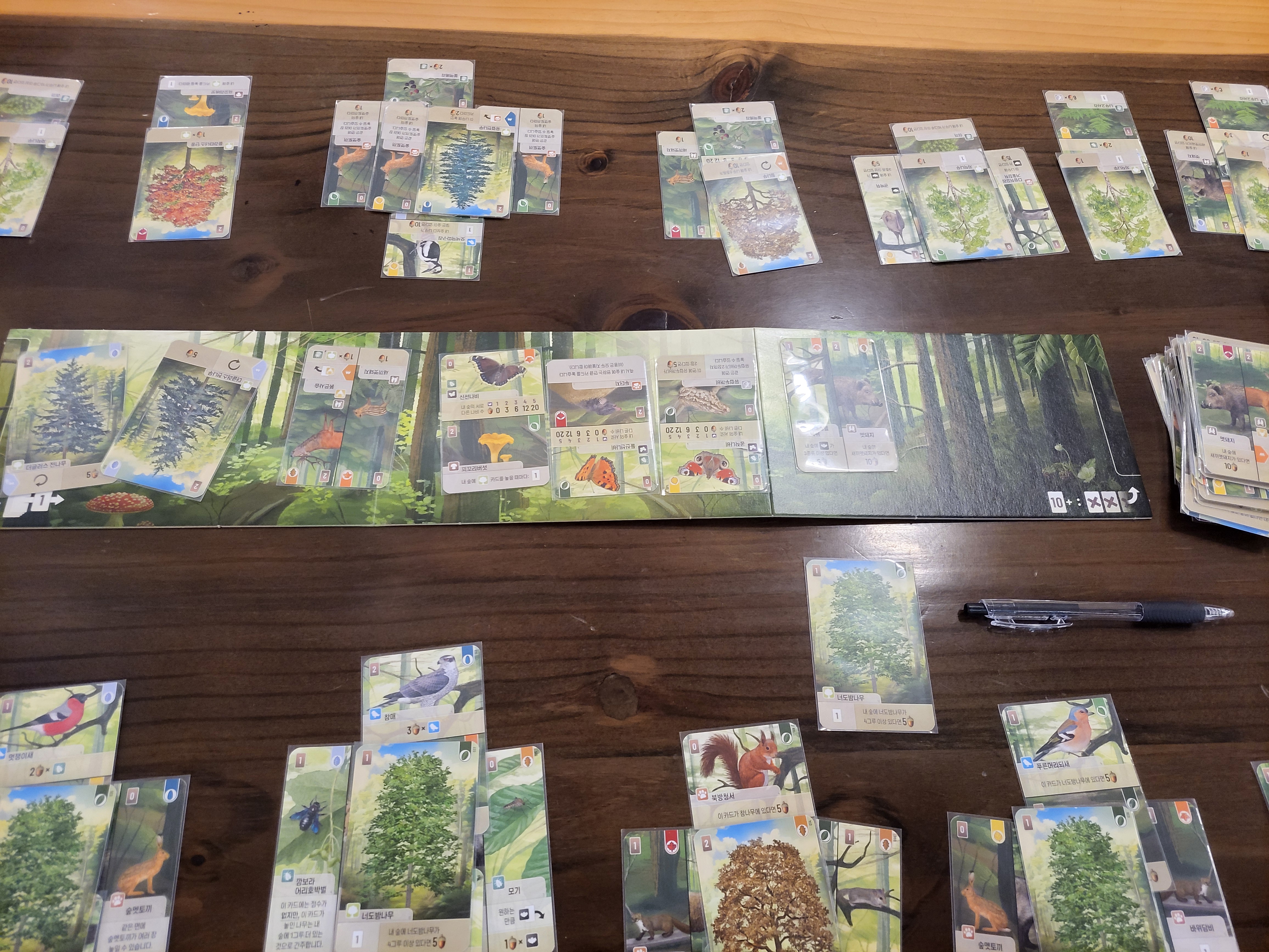카드마다 효과와 보너스가 다르다. 카드를 심어서 점수도 누적시키지만 카드의 효과를 통해서 내 턴에서 할 수 있는 활동을 최대한 늘리기도 한다. 다양한 생물 종이 있으므로 게임을 할 때마다 다른 전략으로 게임을 진행하는 재미가 있다.