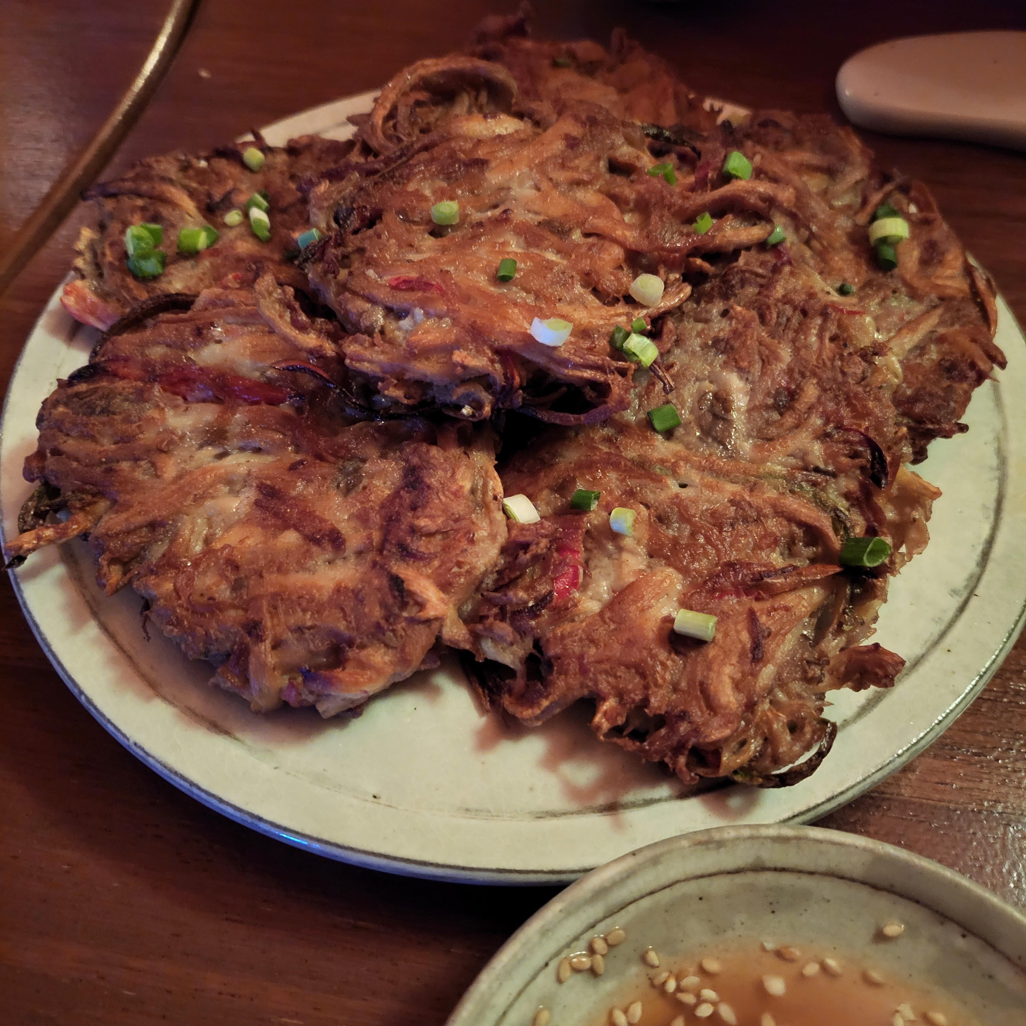 역시 밀가루 + 고기 + 버섯 + 부침은 실패하지 않는다. 소고기 버섯전도 익숙한 맛이지만 술과 곁들이니 좋았다. 원래 전 끄트머리를 좋아하는 편인데 동글동글하게 여러 개가 나와서 바삭바삭하니 맛있었다. 가격은 18000원