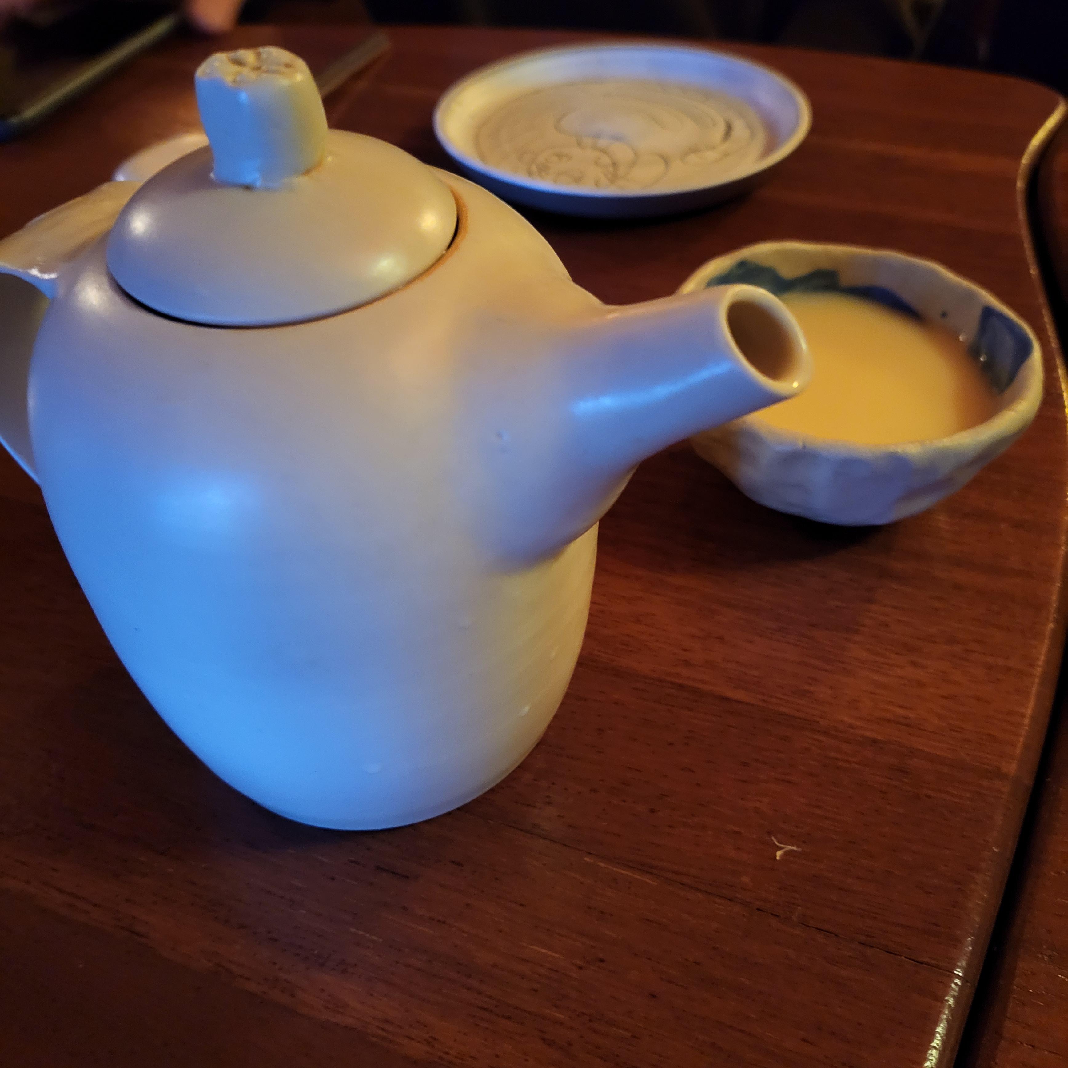 소고기 버섯전 옆에 있는 건 귤주(아마도)다. 지금도 메뉴에 있는지는 잘 모르겠지만 향긋한 과일향이 살짝 나 기분이 좋은 술이다. <공간 뒷동산>은 양조장이다 보니 다양한 전통주를 도전해 볼 수 있다. 다시 말하면 술 메뉴가 딱 고정되어 있진 않는 것 같다. 메뉴판 사진을 안찍어놔서 확신할 수는 없지만 술 메뉴가 많은데 유동적이었던 희미한 기억의 편린이 있다. 이게 어떤 사람에게는 단점일 수도 있지만 새로운 게 계속 추가된다는 면에서 나 같은 사람에겐 오히려 좋다.