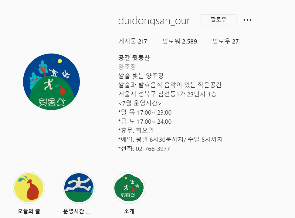 인스타 아이디 @duidongsan_our 에서 정보를 확인할 수 있다.