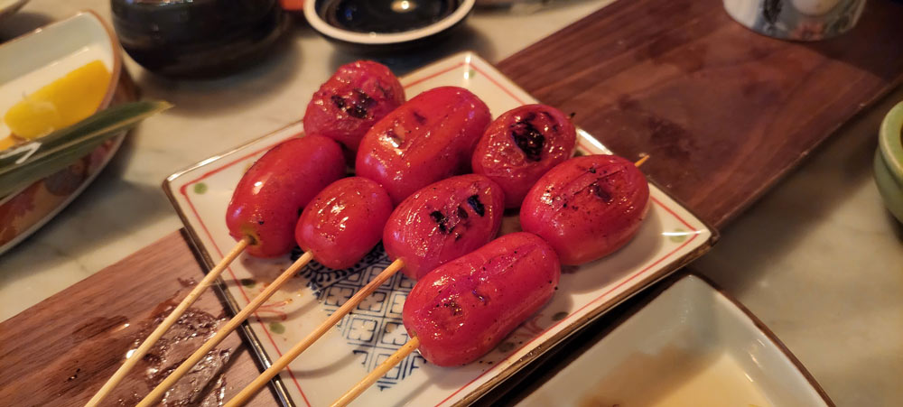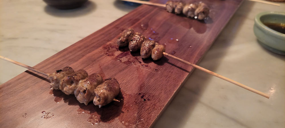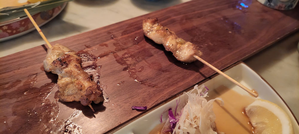 굉장히 부드러워서 기억에 남는다. 게다가 나는 원래 와사비를 좋아하는 편이다. 많이 먹으면 머리가 띵하지만 음식에 소량 섞으면 특유의 향과 맛이 독특한 조합을 낼 때가 있다. 닭은 닭다리 말고는 다 퍽퍽하다는 편견이 있었는데 그 편견을 깨준 닭꼬치다.