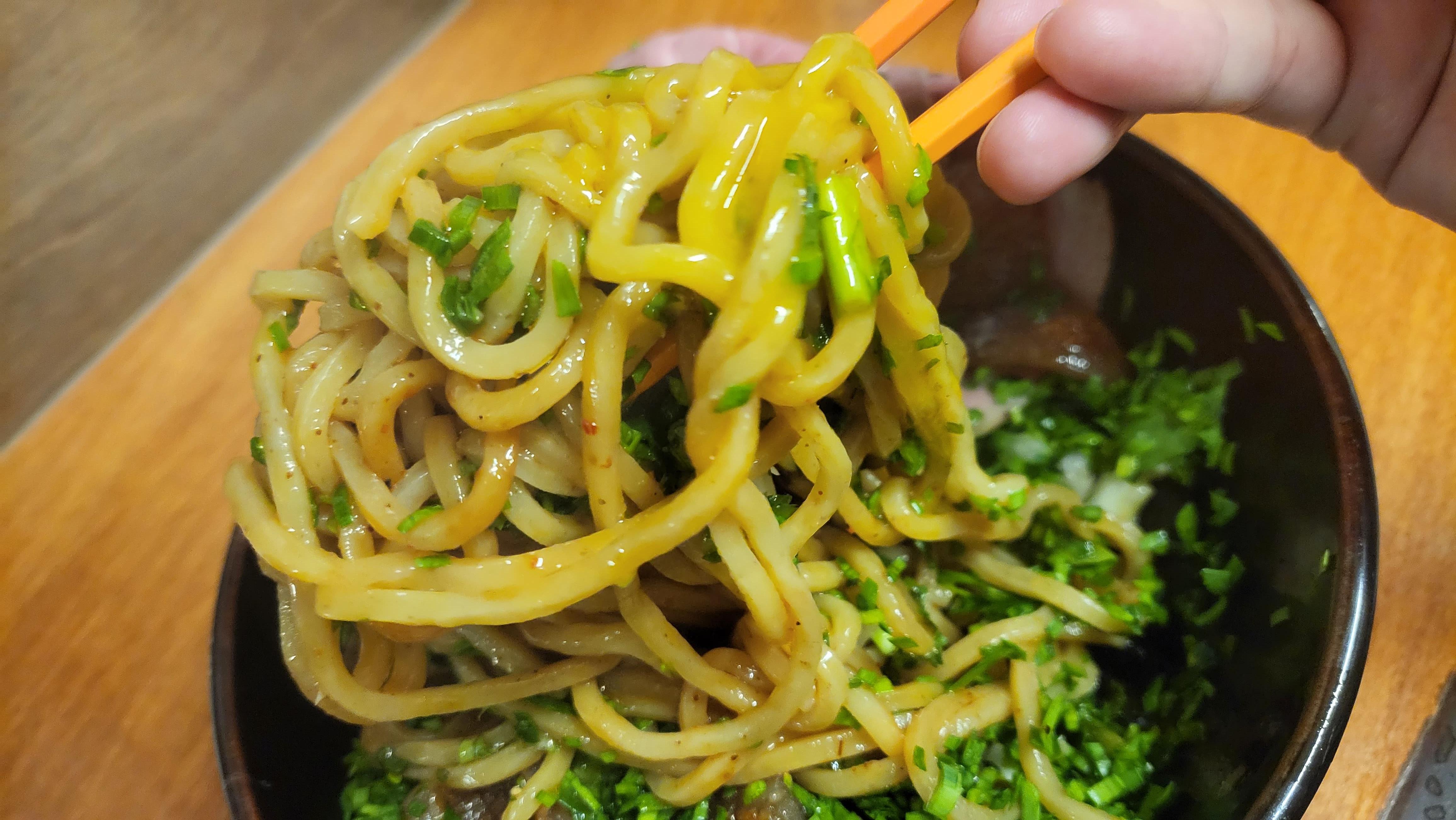 기름진 본성(?)을 보완하려는 목적이었는지 약간 매콤했다. 아부라소바가 원래 그런지 이곳의 아부라소바만 그런지는 모르겠지만 소스에 표고버섯과 죽순이 함께 있어서 씹는 맛을 보완해 준다. 그리고 확실히 마제소바보다는 조금 더 기름진 느낌이다. 돼지껍데기가 있어서 그런지 전체적으로 눅진하고 무거운 느낌이었다.