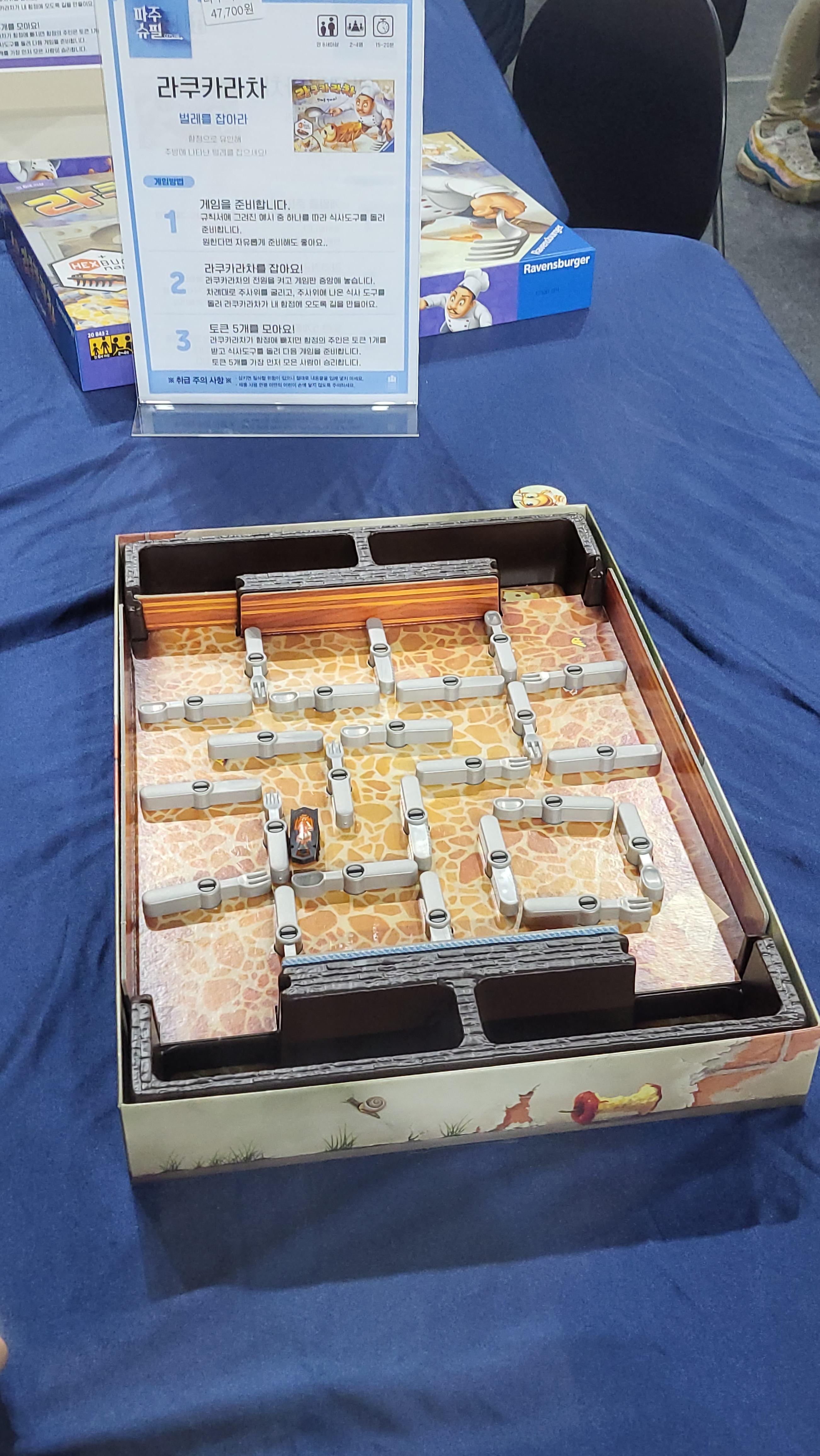 거기 있던 게임 중에서는 이게 제일 내게 흥미로웠다. 바를 돌려서 길을 다르게 만들고 바퀴벌레를 유인하는 게임인데 저 벌레가 움직이는 걸 보고 퀄리티가 좋다는 생각이 들었다. 엄청 징그러우면서 흥미로운 느낌ㅋㅋㅋㅋ 이걸 뭐라고 할지 모르겠다. 암튼 움직이는 컴포넌트 때문에 플레이를 하는 애기들의 집중도가 올라간 모습을 보니까 가족게임으로 괜찮아 보였다.